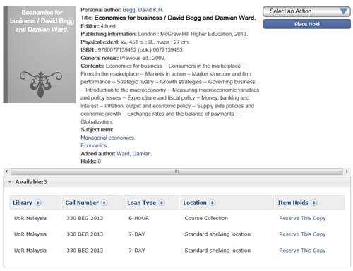 Enterprise will also show you how long you can borrow an item for (if at all). This example shows there is one 6-hour loan copy and two 7-day loan copies.